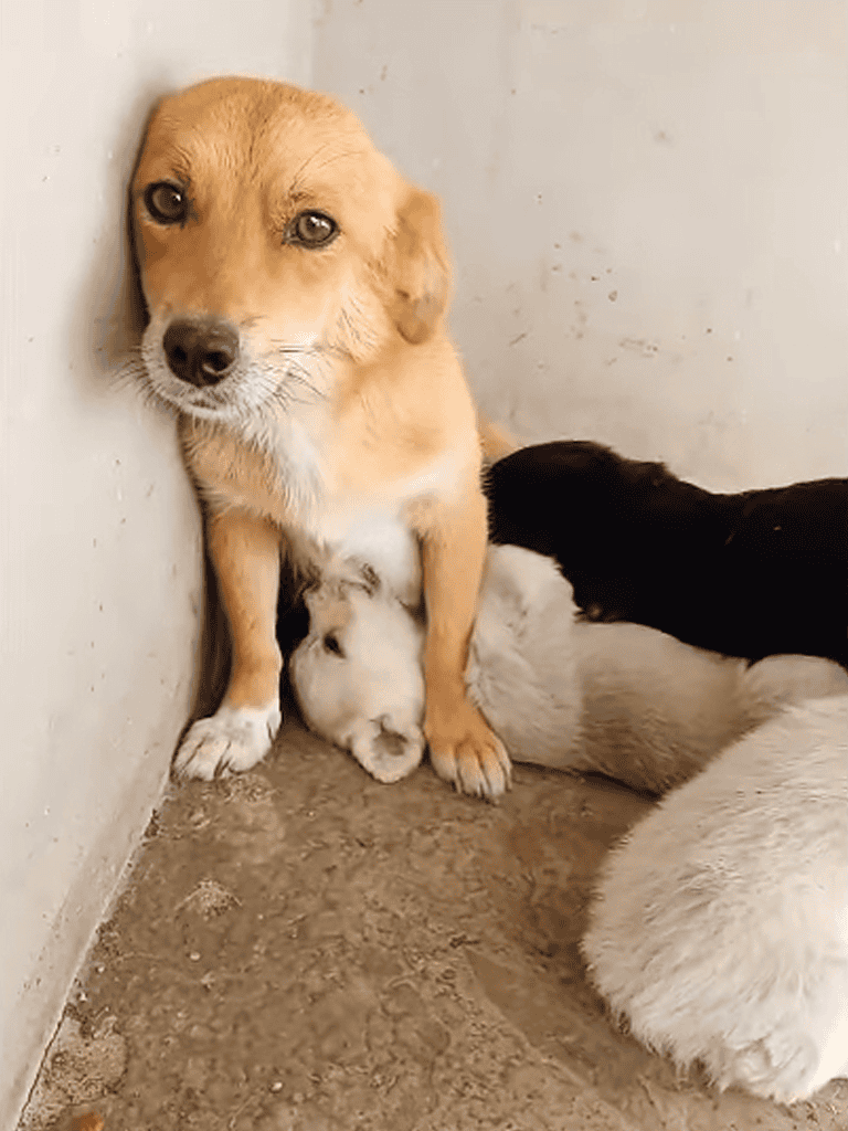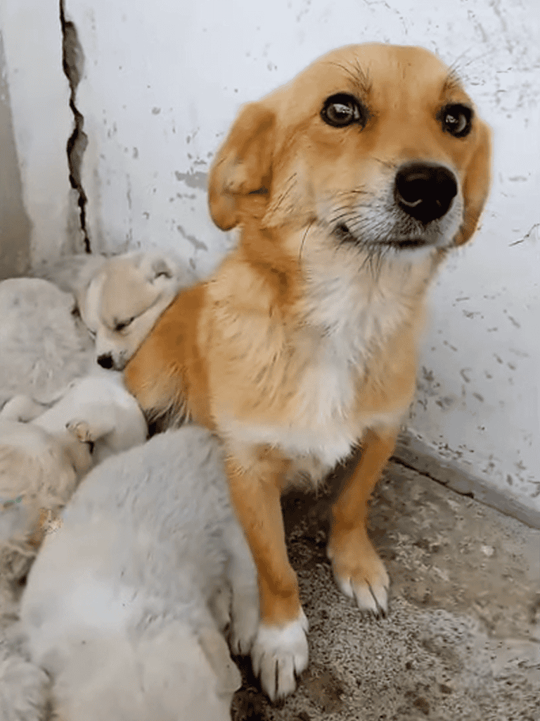 Maria’s six newborn puppies, blind and helpless, nestled close for warmth. Frail and starving, she knew their survival depended on her.