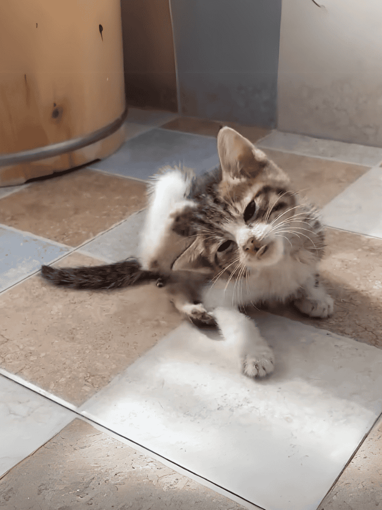 By evening, the kitten showed resilience. His body, once frail, now held energy. His cries were stronger, his movements less sluggish. He had a fight left in him.