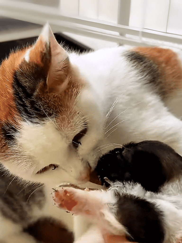 The young cats embraced their new addition, recognizing the shared bond under their mother cat’s watchful eyes.