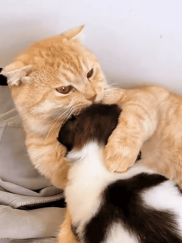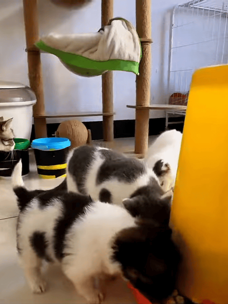 The young cats embraced their new addition, recognizing the shared bond under their mother cat’s watchful eyes.