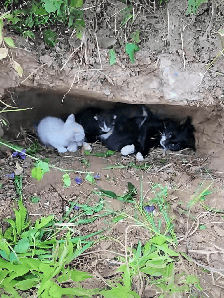 In the small hole, the mother cat had three tiny, bright-eyed kittens. Their soft mews contrasted with her fading strength, as they depended entirely on her.