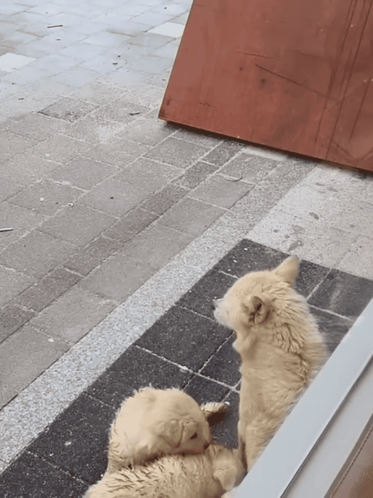 By the third day, the mother returned to the store with her little ones, their fur soaked.