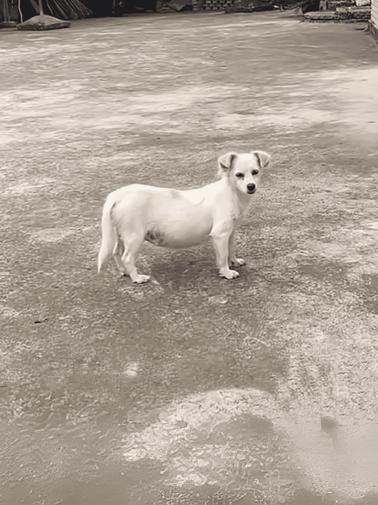 The stray dog became pregnant at six months old, wandering the streets with a burden beyond her age.