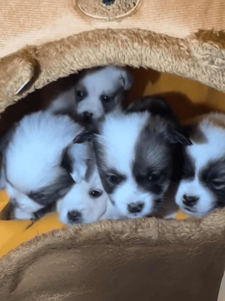 Each puppy, with pudgy bellies and tiny forms, was irresistible. Their soft fur gleamed, and playful squeaks filled the air.