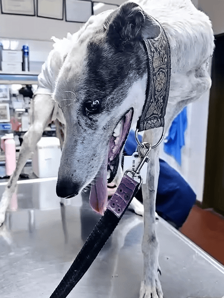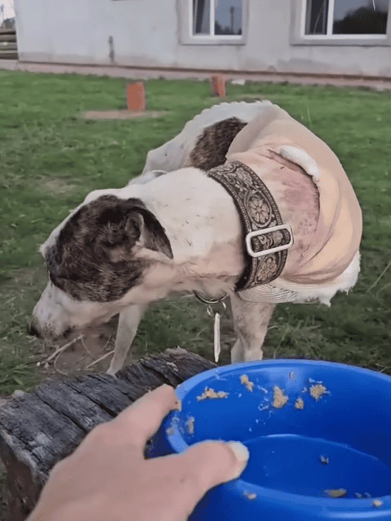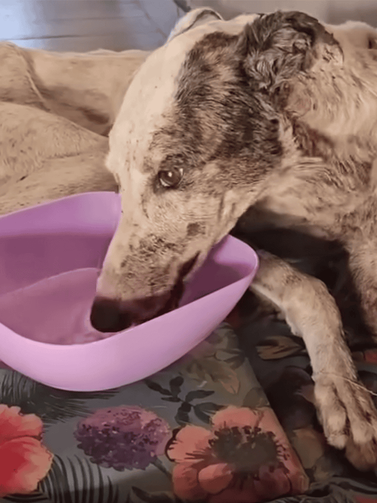 At the vet clinic, the dog lapped up water, her frail body trembling. Her eyes showed gratitude, though her state told a heartbreaking story. This small act of drinking gave hope for her recovery.