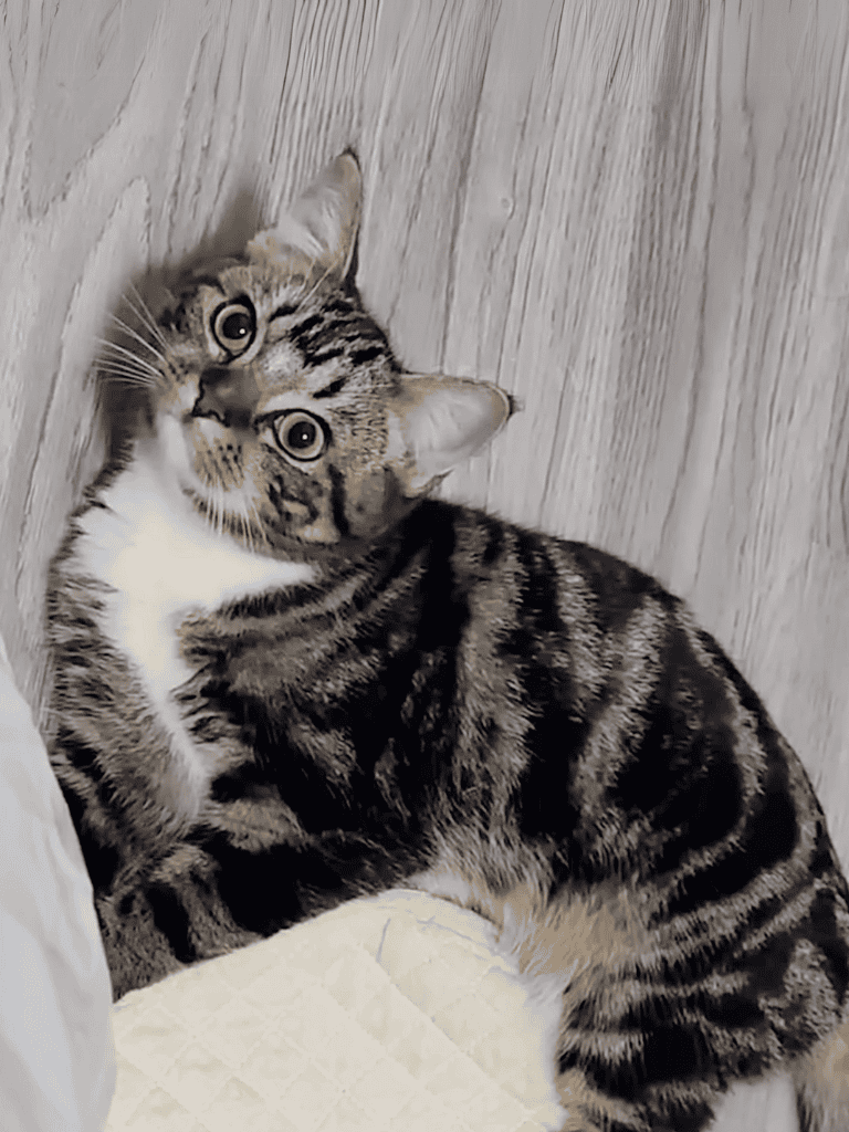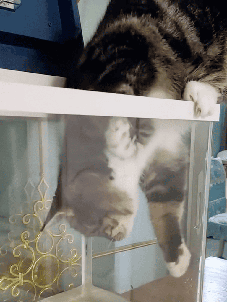 On the 107th day, the kitten’s mischievous streak shone. With curiosity, it approached the shimmering goldfish in the aquarium.