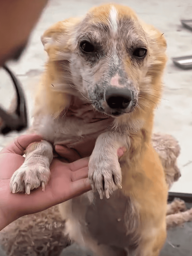 She looked frail and defeated, her body trembling, eyes dull. The spark was gone, leaving only a silent plea for kindness.