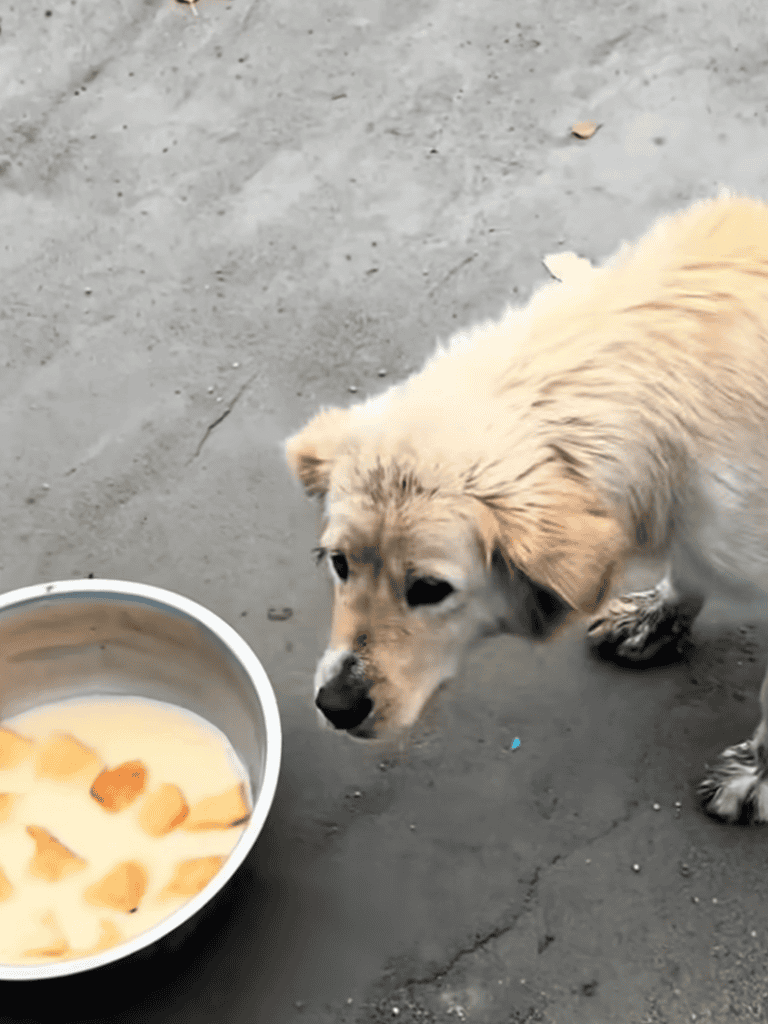 As she lapped at the meal, her eyes softened. She was beginning to understand—she and her pup were safe.