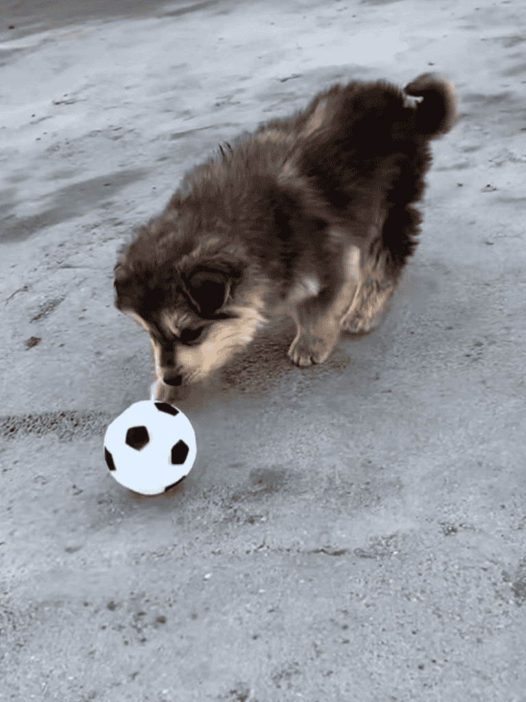 With her belly full, the dog trotted after her owner, tail wagging. She nuzzled her legs, looking up eagerly for a game.