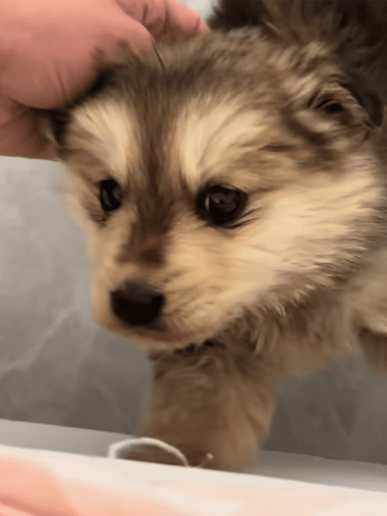 The tiny pup warmed up to the lady, her tail wagging. The woman soon realized the stray was a girl.