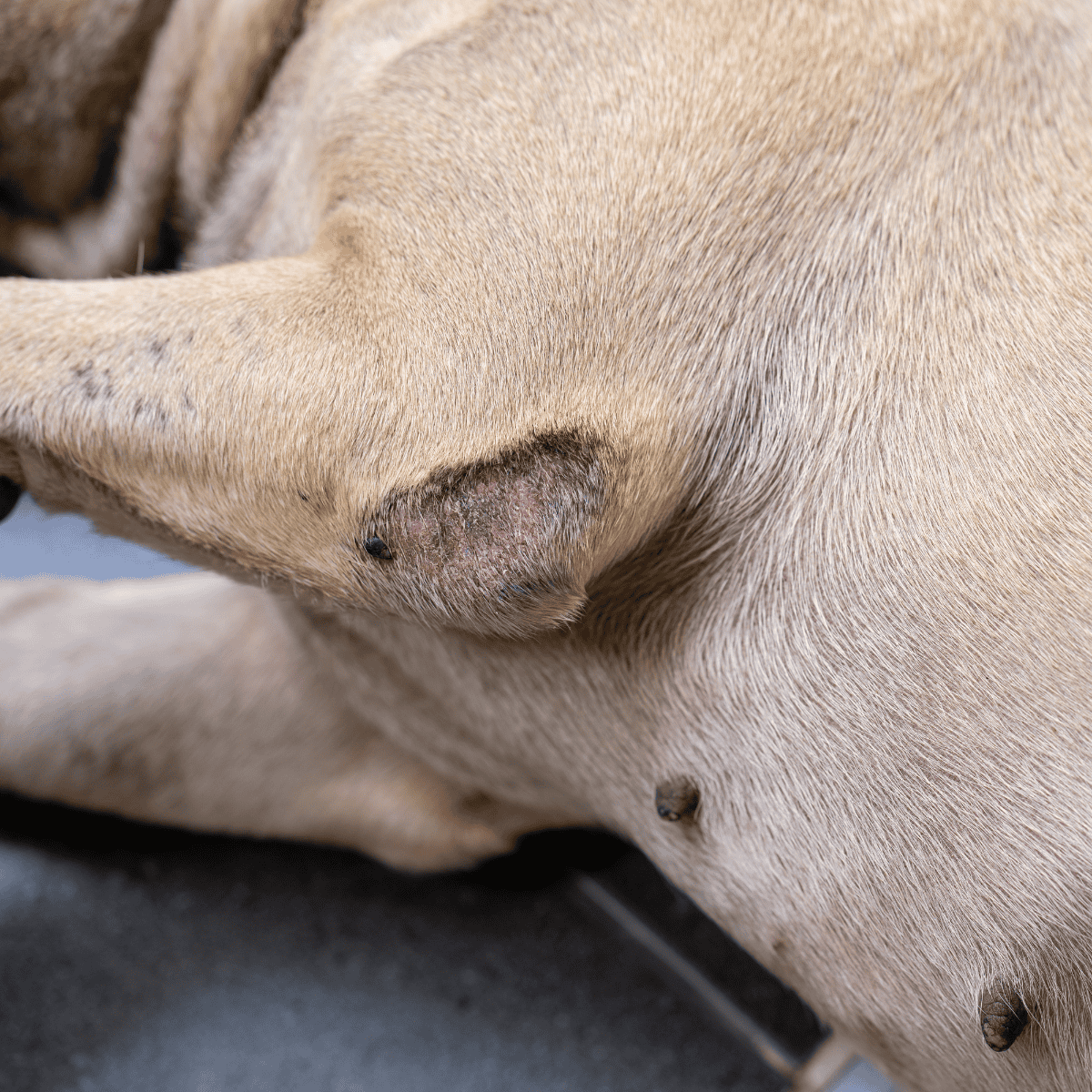 Parasites like fleas and mites can irritate a dog’s skin. Look for tiny moving bugs or black spots (flea dirt). Ticks often hide between the toes, under the legs, and behind the ears. Use tweezers close to the skin to remove ticks entirely.